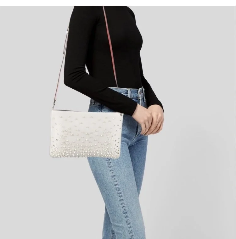 Shop › Christian Louboutin Authentic White W Gold Studded Purse Image 1 of 4 Image 2 of 4 Image 3 of 4 Image 4 of 4 Christian Louboutin Authentic White W Gold Studded Purse $500.00 Pre owned in exc condition authentic , comes w original strap as well as gold chain strap and dust bag Add To Cart Added! Pre owned in exc condition authentic , comes w original strap as well as gold chain strap and dust bag